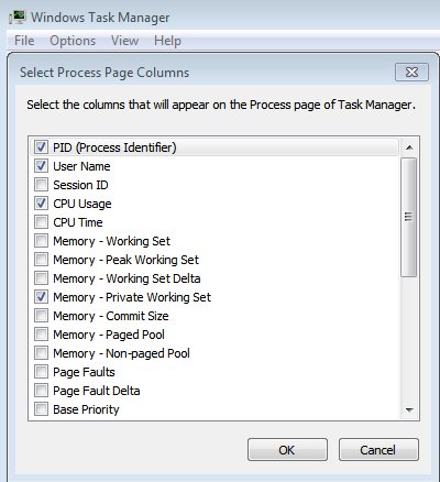 To do this, select "View" from the menu and then click "Select Columns". On the "Select Process Page Columns" make sure there is a check mark in "PID (Process Identifier)" selection box and then click OK.